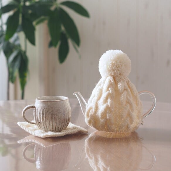【編み物キット】4色から選べる ティーコゼー&マット・A
